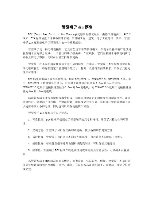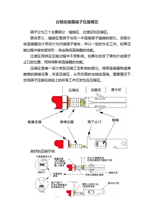 端子压接规范范文端子压接是一种常见的电工连接方式,它通过使用压接工具将导线与端子紧密连接,确保电流的传输和安全运行。