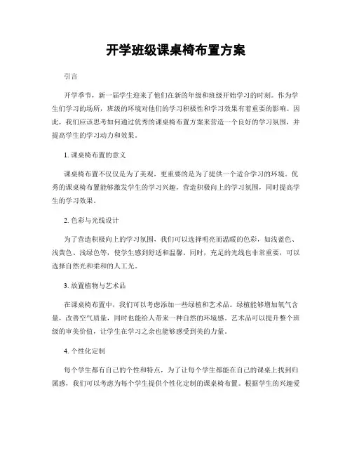 三、方案设计1. 采用优质材料在教室桌椅的制作过程中,应选用环保材料,符合国家对材料环保标准。