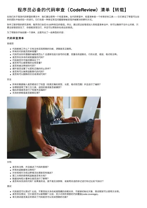 程序员必备的代码审查(CodeReview)清单【转载】在我们关于⾼效代码审查的博⽂中,我们建议使⽤⼀个检查清单。