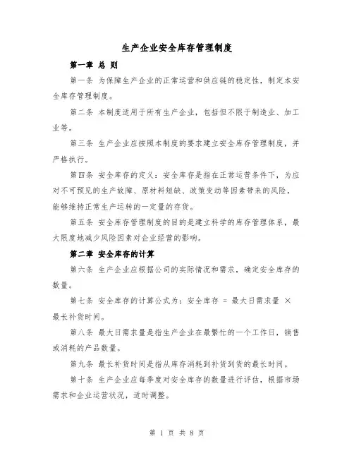 生产企业安全库存管理制度范本第一章总则第一条为了保障生产企业的生产运营安全,合理利用企业资源,确保供应链的正常运转,制定本制度。