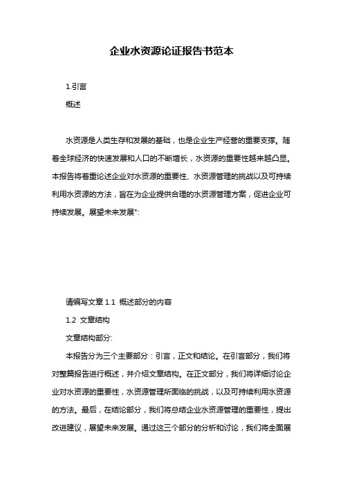 企业水资源论证报告书范本1.引言概述水资源是人类生存和发展的基础,也是企业生产经营的重要支撑。
