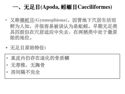 1.无足目这是原始的一类,又是营钻穴生活的特化类型。