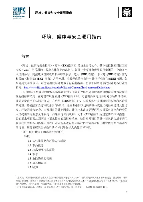 植物油加工业环境、健康与安全指南前言《环境、健康与安全指南》(简称《EHS指南》)是技术参考文件,其中包括优质国际工业实践(GIIP)所采用的一般及具体行业的范例。