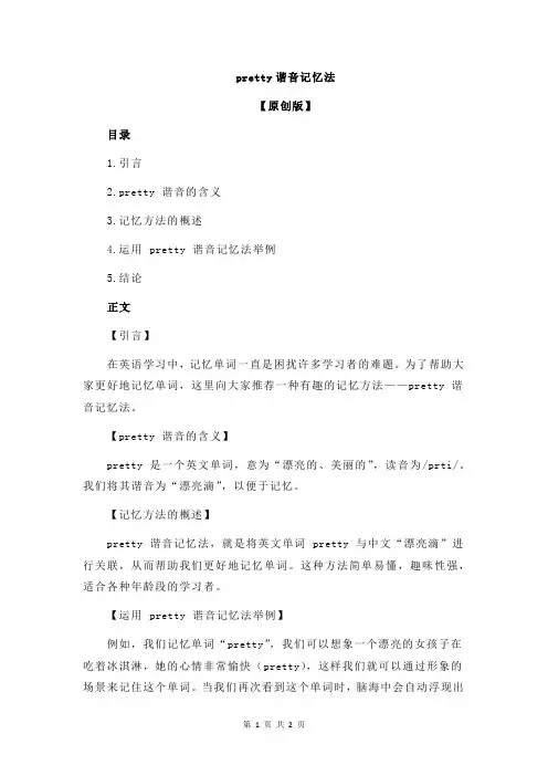 pretty 谐音记忆法是一种寓教于乐的记忆方法,通过将英文单词与中文谐音相结合,帮助学习者轻松记忆单词。