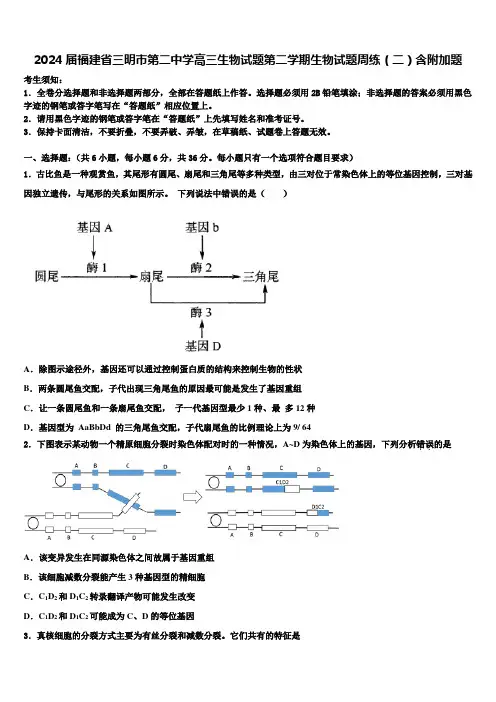 2024届福建省三明市第二中学高三生物试题第二学期生物试题周练(二)含附加题考生须知:1.全卷分选择题和非选择题两部分,全部在答题纸上作答。