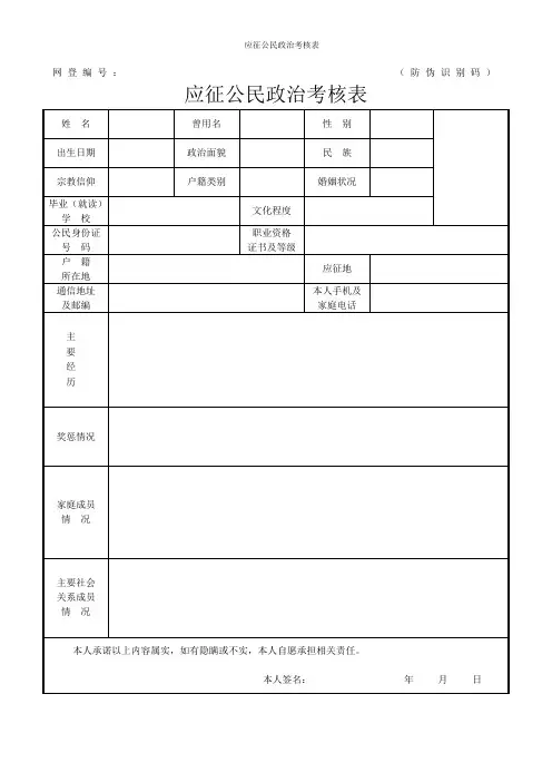 应征公民政治考核表。