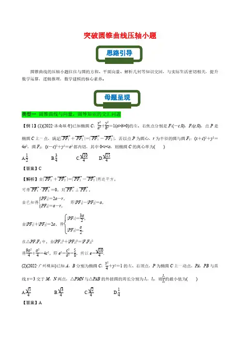 突破圆锥曲线压轴小题圆锥曲线的压轴小题往往与圆的方程、平面向量、解析几何等知识交回,与实际生活密切相关,提升数学运算,逻辑推理,数学建模的核心素养。