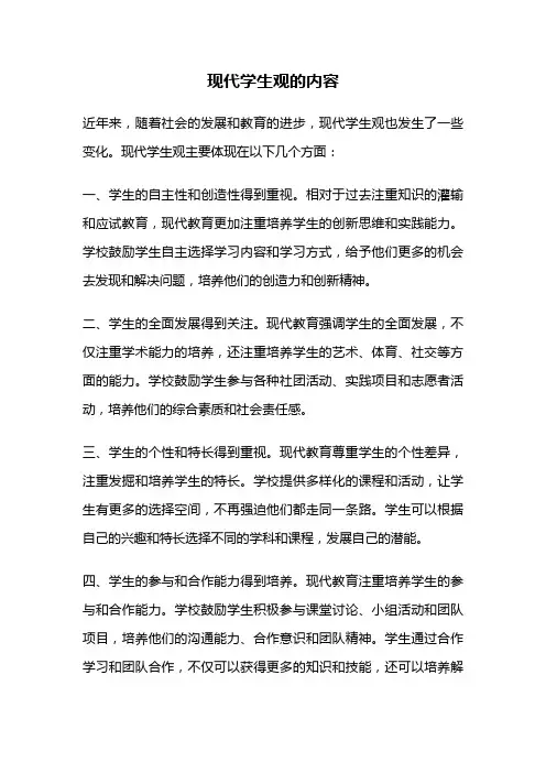 现代学生观的主要内容现代学生观是指当代学生对于学习、生活、未来的态度和看法。