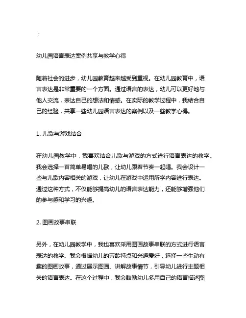 幼儿园教师的语言表达技巧分享幼儿园教师的语言表达技巧分享作为幼儿园教师,语言表达技巧是日常教学工作中不可或缺的一部分。