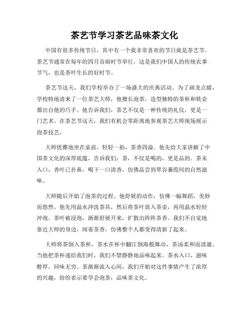 三、亲身体验为了更深入地了解茶文化,我决定亲自体验一下泡茶的过程。