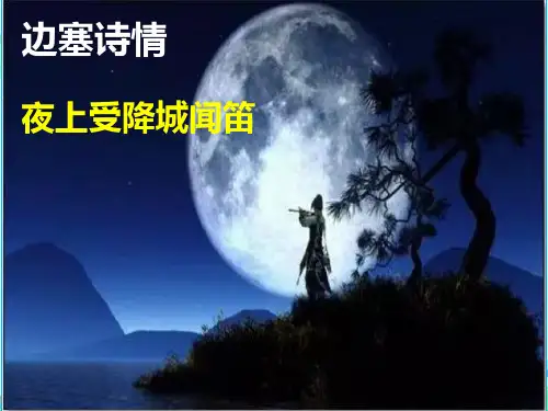 葡萄美酒夜光杯, 欲饮琵琶马上催。 秦时明月汉时关, 醉卧沙场君莫笑, 万里长征人未还。 古来征战几人回? 但使龙城飞将然风 光为题材的诗。 一般认为,边塞诗初步发展于汉魏六 朝时代,隋唐时开始兴盛,到唐代,一批 诗人十分擅长描写边塞征战生活,后人称 他们为“边塞诗人”,形成了所谓的“边 塞诗派”,反映边塞征战生活的诗作逐渐 蔚为大观