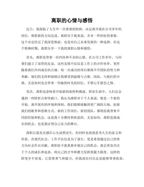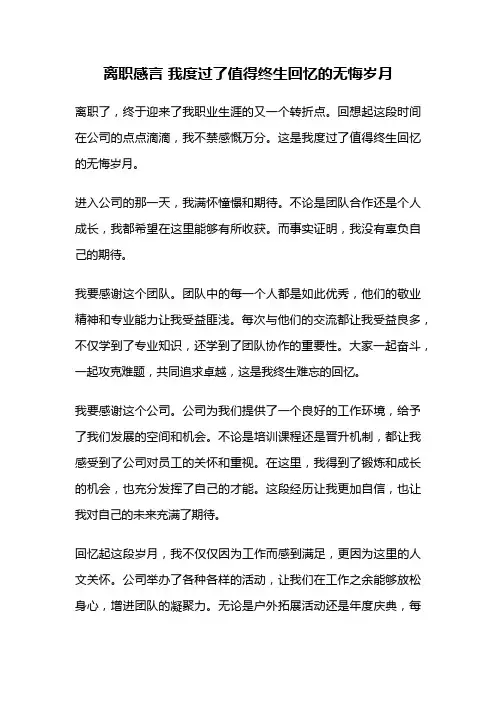 以下是我在离职后对过去工作的几点体验和感悟:一、团队协作的重要性在上一家公司,我深刻体会到了团队协作的力量。