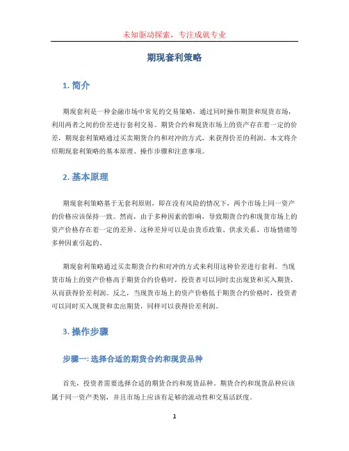 期现套利策略范文期现套利是一种常见的金融投资策略,通过同时进行期货交易和现货交易,利用两者之间的价格差异来获取风险无风险利润。