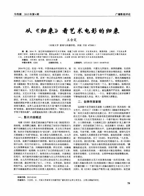 从《归来》看张艺谋艺术电影的回归与创新【摘要】张艺谋是中国当代著名导演,他的电影作品融合了传统与创新。