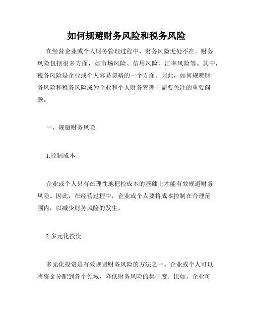如何规避财务风险和税务风险在经营企业或个人财务管理过程中,财务风险无处不在。