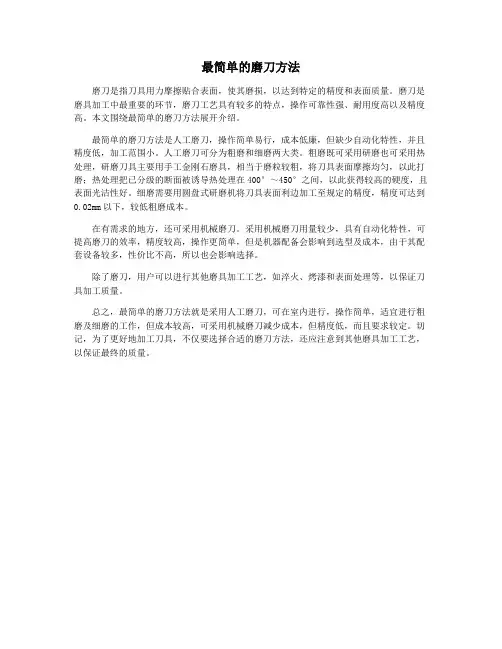 二、磨刀的工具1. 磨刀石磨刀常用的磨具主要包括磨刀石和磨刀器。