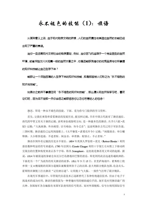如果你之前并不掌握任何“永不褪色的知识和技能”,那么请从现在开始学习吧,喜欢!它们吧,因为说不定那一天你会因之能够拯救你以及你所爱的人的性命.............旗语..,即是一种永不褪色的技能。