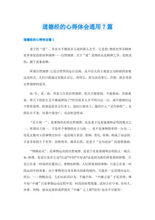 但是⼼得体会有什么要求呢?以下是⼩编为⼤家整理的学习道德经⼼得体会(通⽤7篇),供⼤家参考借鉴,希望可以帮助到有需要的朋友。