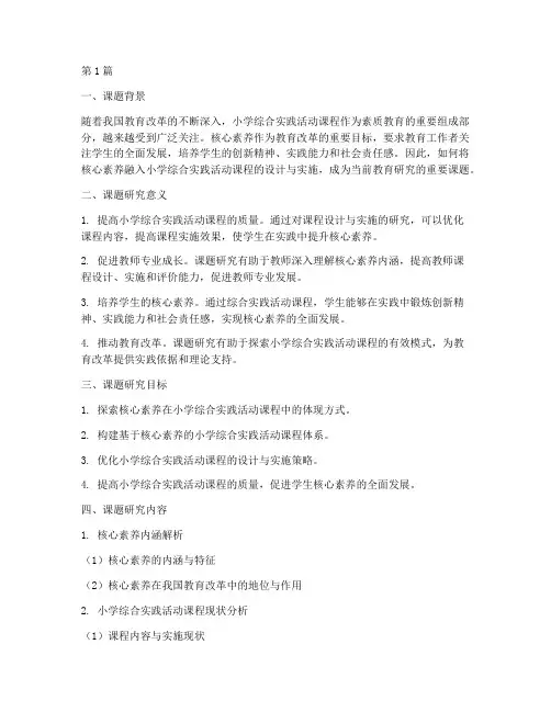 第1篇一、课题背景随着我国教育改革的不断深入,小学综合实践活动课程作为素质教育的重要组成部分,越来越受到广泛关注。