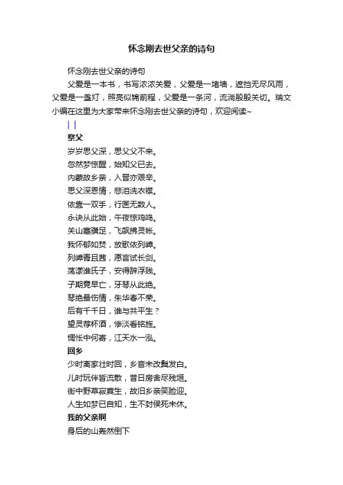 哀悼亡父七绝诗1. 《念父》严父西游去不还,音容宛在梦中间。