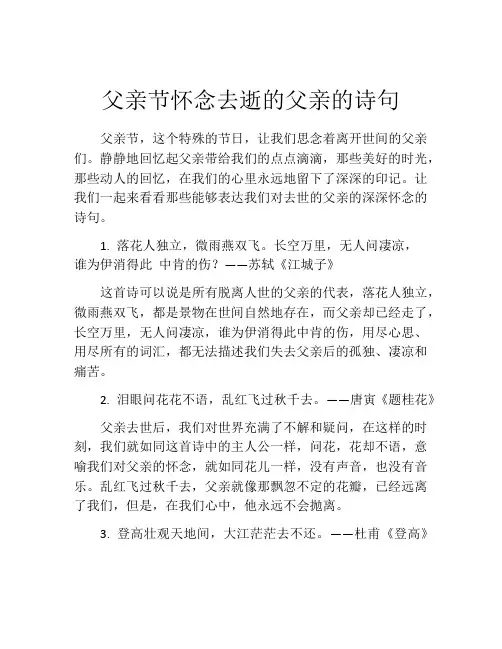 结论:父亲的离去是永远的痛,这些诗表达了对亡父深深的哀悼和思念,让人感受到那份真挚的情感。