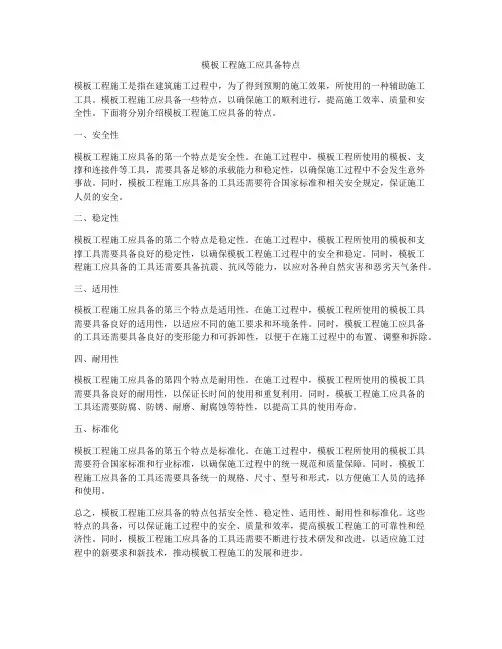 这些特点的具备,可以保证施工过程中的安全、质量和效率,提高模板工程施工的可靠性和经济性。
