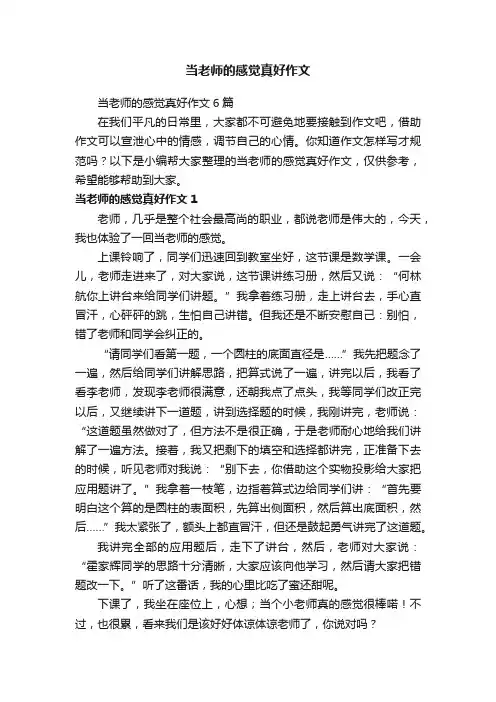 当老师的感觉真好作文当老师的感觉真好作文4篇在生活、工作和学习中,大家一定都接触过作文吧,通过作文可以把我们那些零零散散的思想,聚集在一块。