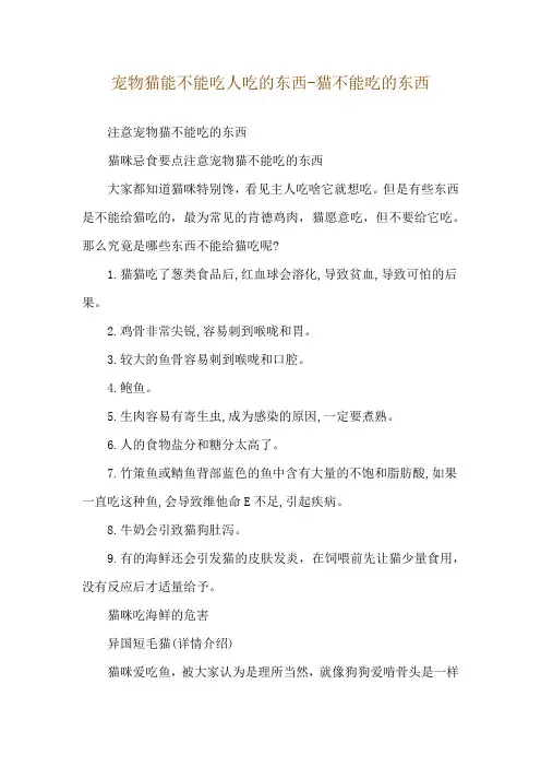 猫咪禁止和不能吃的食物猫不能吃的东西很多,超出你想象的多——有些东西是因为刺激性太强,有些是因为会卡到嗓子,还有些是因为会过敏……其中不少都是致命的。