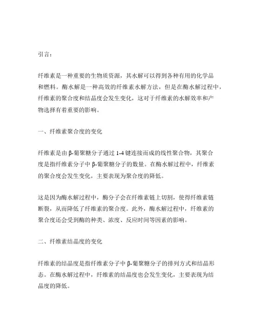 三、纤维素聚合度和结晶度变化对酶水解的影响纤维素聚合度和结晶度的变化对酶水解有着重要的影响。