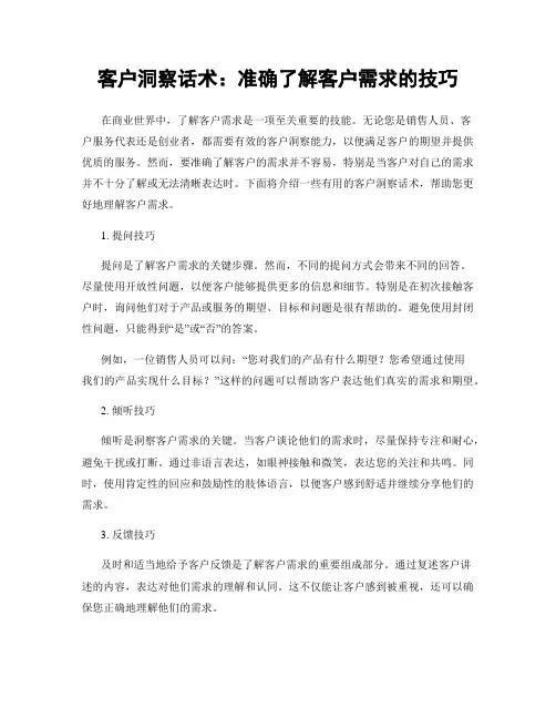 一、深入挖掘客户需求了解客户需求不仅仅停留在表面,更为重要的是要深入挖掘客户背后的真实需求。