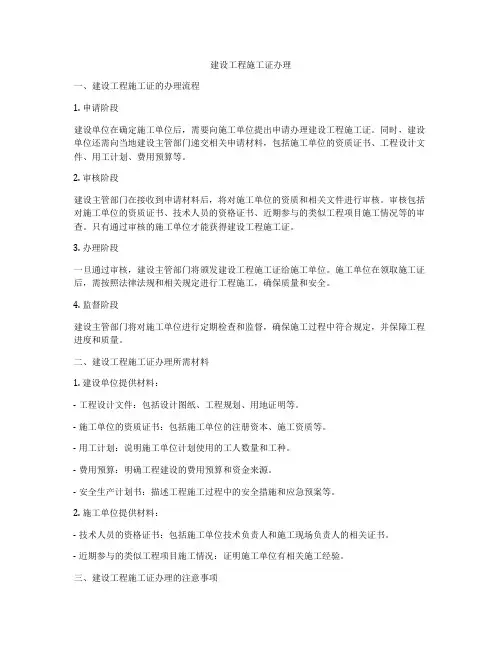 需要注意的是,不同地区和不同类型的施工证办理流程可能会