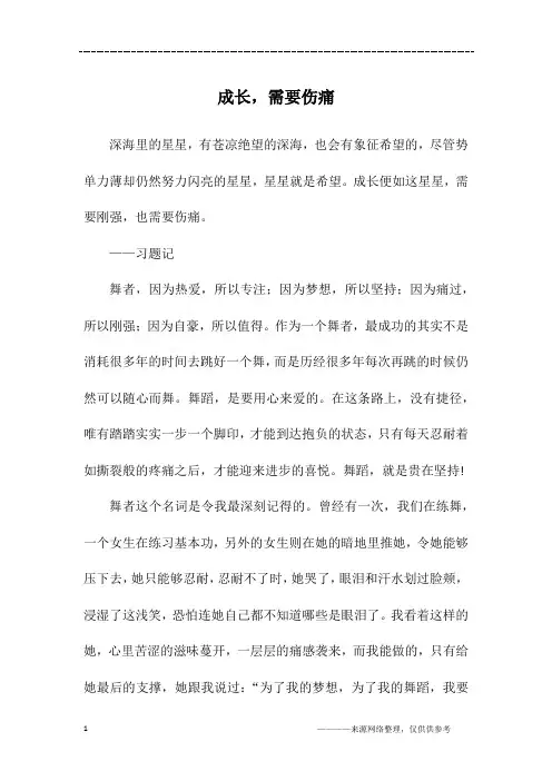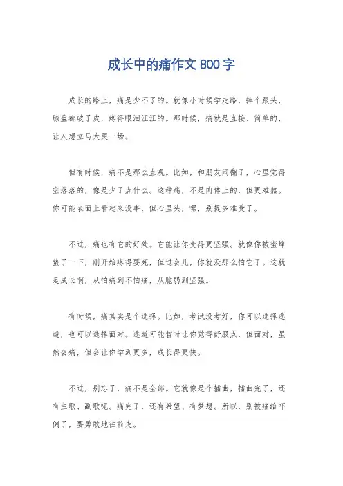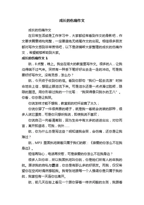 文档下载后可定制修改,请根据实际需要进行调整和使用,谢谢!并且,本店铺为大家提供各种类型的经典范文,如演讲稿、总结报告、合同协议、方案大全、工作计划、学习计划、条据书信、致辞讲话、教学资料、作文大全、其他范文等等,想了解不同范文格式和写法,敬请关注!Download tips: This document is carefully compiled by this editor. I hope that after you download it, it can help you solve practical problems. The document can be customized and modified after downloading, please adjust and use it according to actual needs, thank you!In addition, this shop provides you with various types of classic sample essays, such as speech drafts, summary reports, contract agreements, project plans, work plans, study plans, letter letters, speeches, teaching materials, essays, other sample essays, etc. Want to know the format and writing of different sample essays, so stay tuned!成长的疼痛初中作文成长的疼痛初中作文(精选5篇)正如有人所说“成长的过程有甜蜜的回忆,也有苦难的磨难”自己本没有深刻体会罢了。