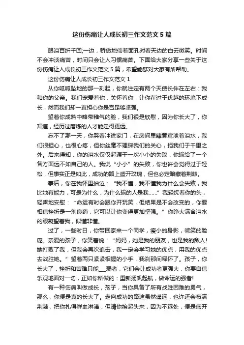 初三作文成长里的伤痛700字5篇成长里的伤痛作文1曾经在迷茫中叹息,又在平静中寻找自己,在迷茫与平静中我们长大了。