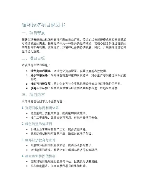 【一、背景分析】1.全球资源短缺和环境污染问题日益严重,迫切需要转变经济发展模式,推动循环经济的发展。