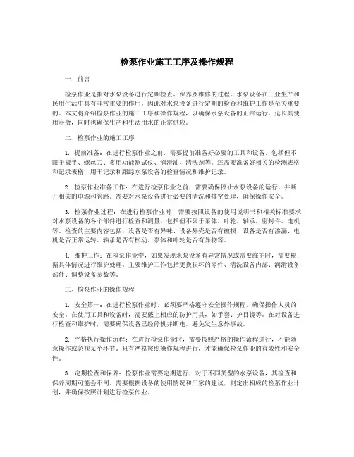井下水泵维修工操作规程范本第一章总则第一条为提高井下水泵维修工作的质量、效率和安全性,保证设备正常运行,制定本操作规程。