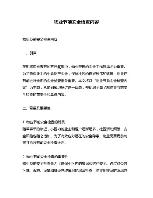 本文档旨在对小区物业在节假日期间进行安全检查的重要性和具体操作进行说明,并提供一些安全检查的注意事项。