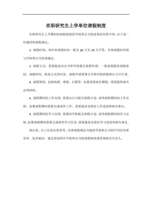 在职研究生上学期间的请假制度因学校和公司的政策而有所不同。