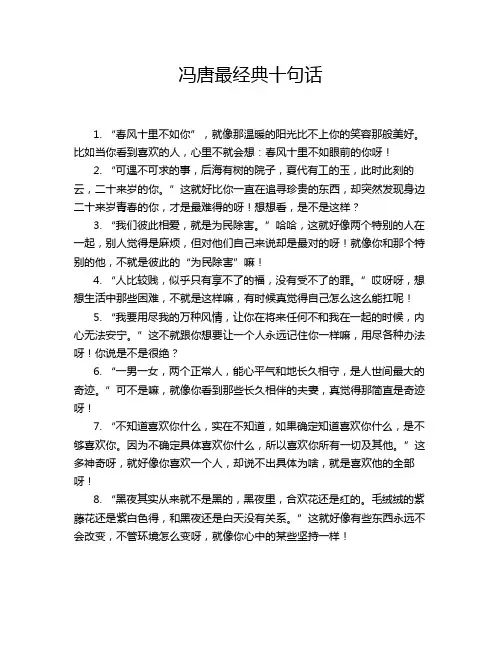 冯唐最精辟的十句话1. “春水初生,春林初盛,春风十里,不如你。