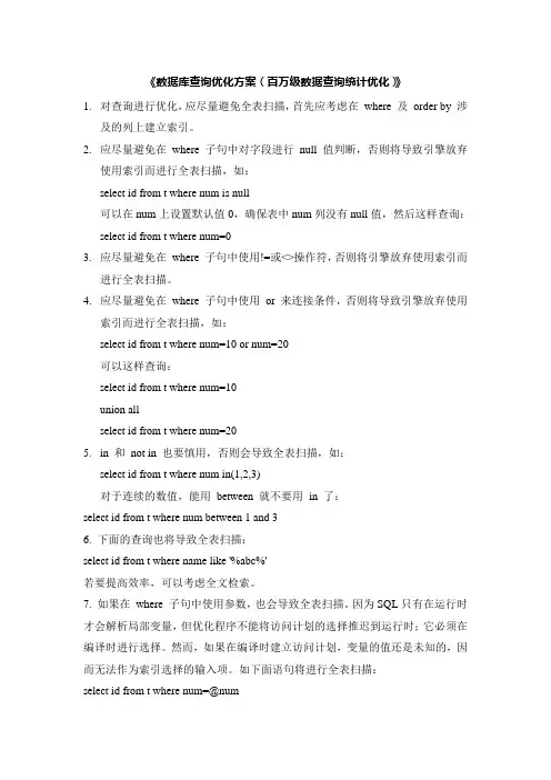 1. 查询优化查询是数据库管理系统中最常见的操作之一。