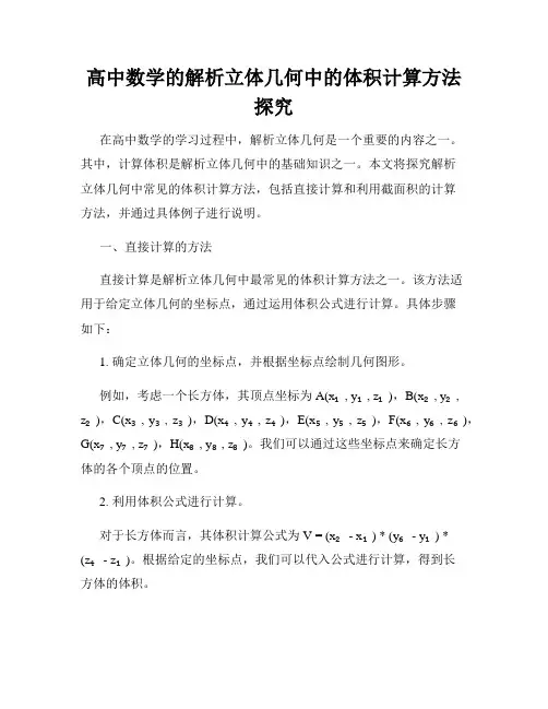 高中数学的解析立体几何中的体积计算方法探究在高中数学的学习过程中,解析立体几何是一个重要的内容之一。