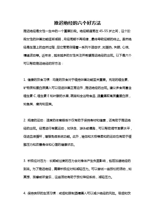 总之,通过以上六个好方法,我们可以有效地推迟绝经的发生。