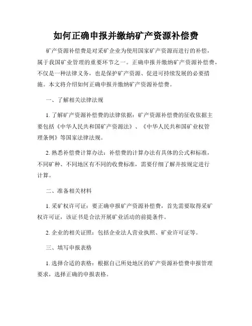 四、矿产资源补偿费的征收时间和方式矿产资源补偿费按照年度征收,每年征收一次,征收方式为自行申报并交纳。
