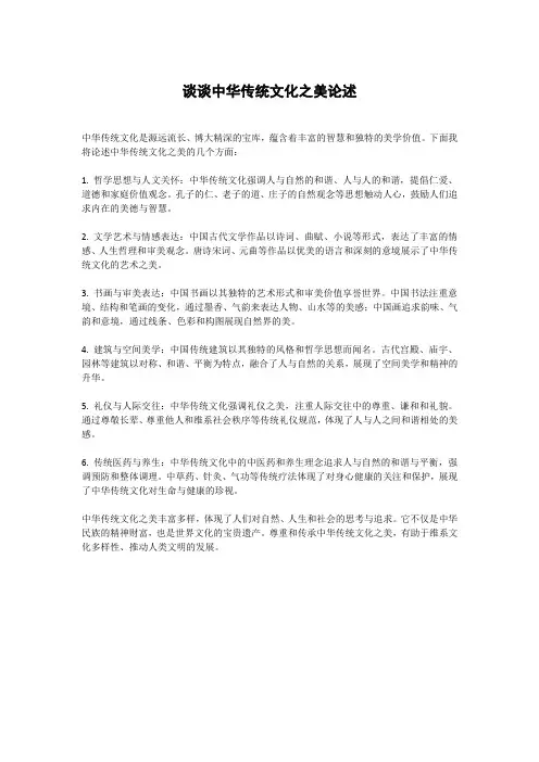 论中国传统文化中蕴含的当代价值中国传统文化是中国文化的源头,中国传统文化中包含着丰富的哲学、伦理、美学等方面的内容,这些内容不仅是中国历史文化的重要组成部分,也是中华民族的价值观、思想观、行为规范的重要来源。