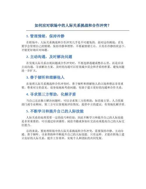 有效的团队合作和冲突处理可以促进人际关系的和谐与发展。