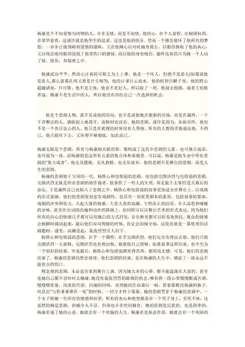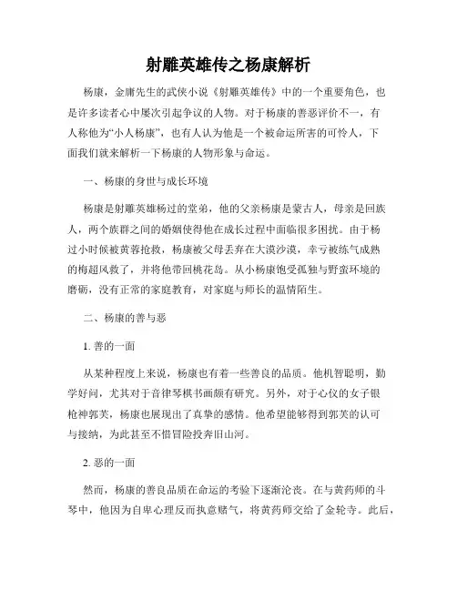 二、杨康的善与恶1. 善的一面从某种程度上来说,杨康也有着一些善良的品质。