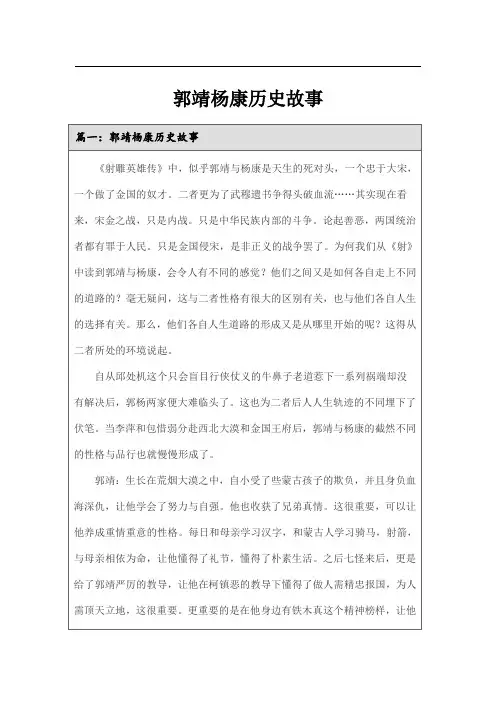 一、杨康的身世与成长环境杨康是射雕英雄杨过的堂弟,他的父亲杨康是蒙古人,母亲是回族人,两个族群之间的婚姻使得他在成长过程中面临很多困扰。