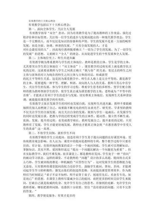课堂教学十大原则一、民主性:教师不是高高在上知识的统领者,也不存有话语霸权,课堂专制,有的只是平等的人格,学习的伙伴。