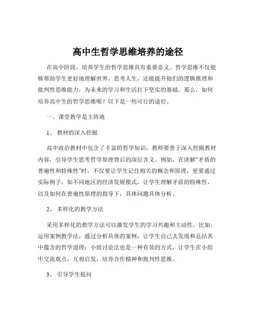 高中生哲学思维培养的途径在高中阶段,培养学生的哲学思维具有重要意义。