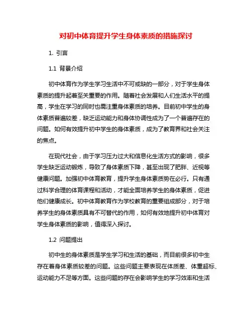 对初中体育提升学生身体素质的措施探讨1. 引言1.1 背景介绍初中体育作为学生学习生活中不可或缺的一部分,对于学生身体素质的提升起着至关重要的作用。