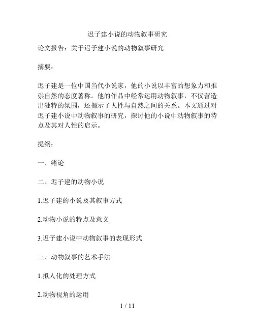 迟子建小说的动物叙事研究论文报告:关于迟子建小说的动物叙事研究摘要:迟子建是一位中国当代小说家,他的小说以丰富的想象力和推崇自然的态度著称。
